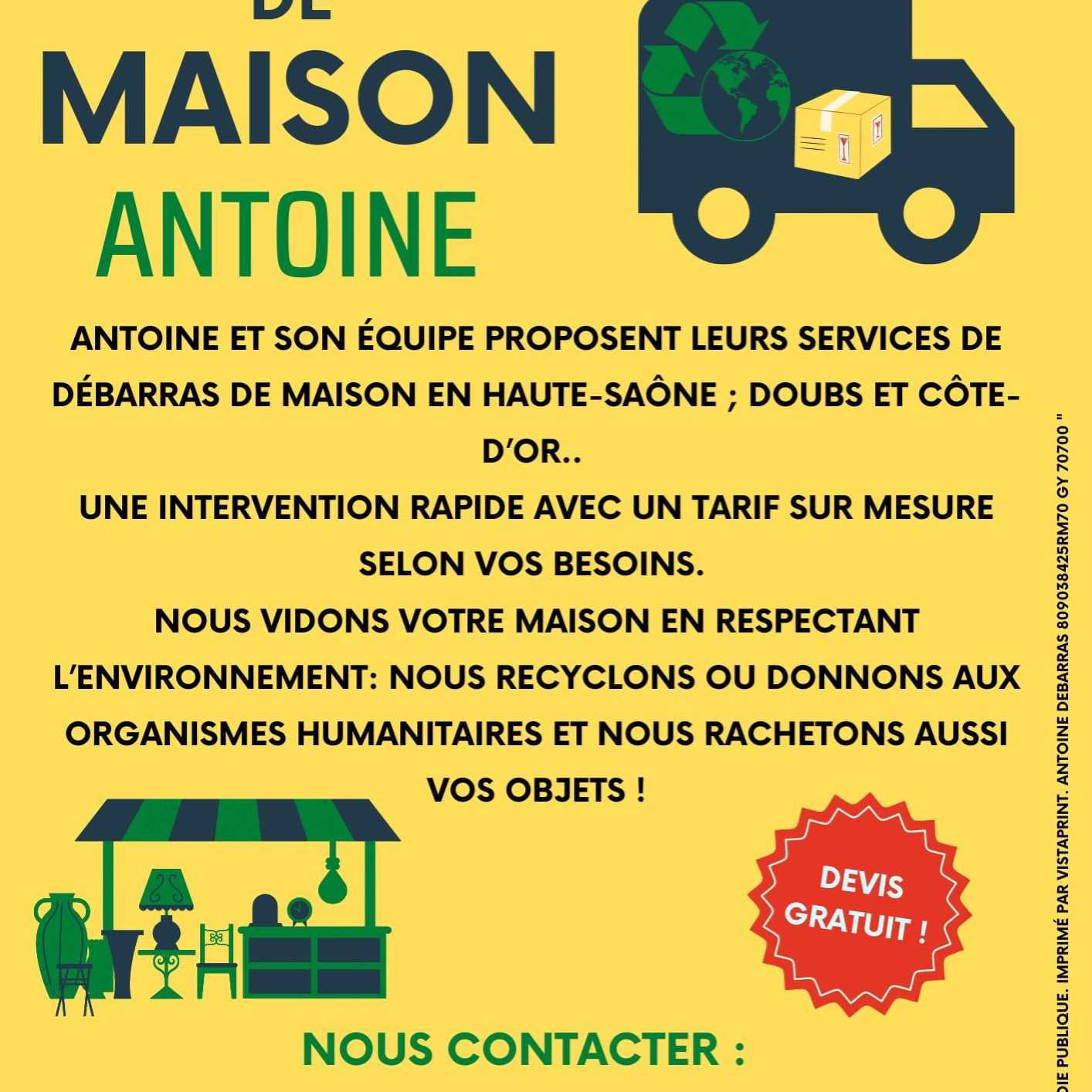 | Services Proposés | NOS SERVICES : - Débarras - Vide Maison - Recyclage - Déchetterie - Transport / Livraison - Déménagement - Rachat cash ou Dépôt Vente - Devis Gratuit - Intervention sur tout le d...Lire la suite | |